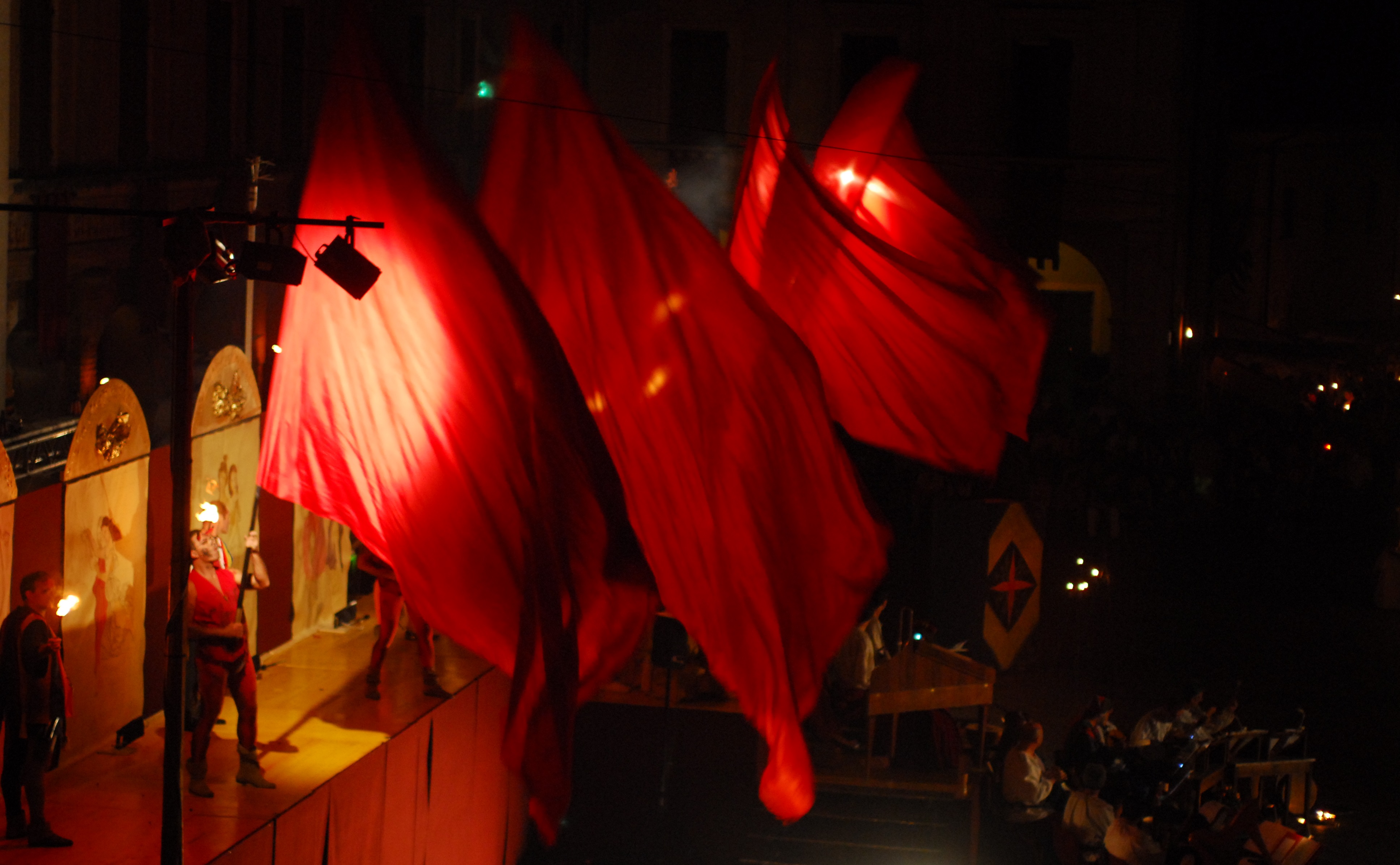 Oltre che le formazioni basilari, gli Sbandieratori e i Musici sono in grado di offrire anche spettacoli in notturna, di grandissima suggestione e creati con caratteristiche adatte a seconda dell’evento e del luogo in cui ci troviamo ad operare.