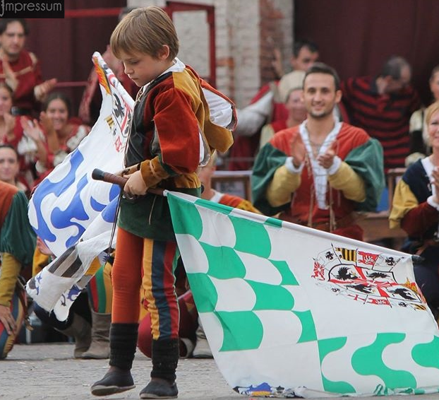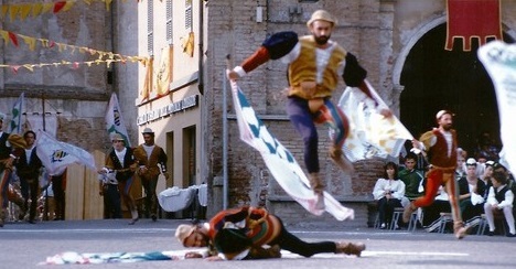 Si formarono così piccoli gruppi di Sbandieratori in ognuna delle quattro contrade del paese, che continuarono per alcune edizioni ad arricchire gli spettacoli domenicali del palio.